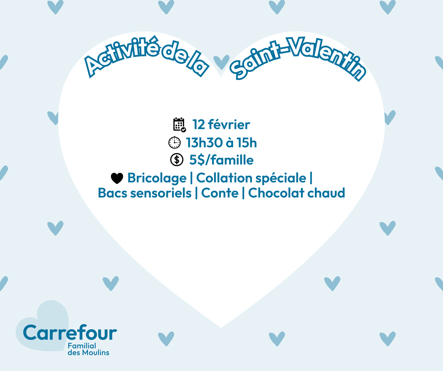 Un après-midi pour souligner la fête de l'amour! Des activités pour les enfants de 2 à 5 ans.